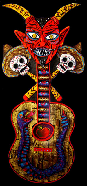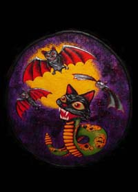 Is low brow art more popular in general society these days? Why?Well that's a hard question to answer as I am speaking for so many artists. I`ve noticed that contemporary artists are media savy and there is something akin to a grass roots movement of artistic self promotion via the internet . You can trace cool stuff back as far as you care to. There is so much more to art and culture than the 1950's-60's and for that I tend not to pay attention solely to the term Lowbrow to catagorize what I do and more time tracing the interwoven lineage of interesting scenes that once fourished like the Surrealists, art movements, lost obscure publications,early recorded music, film, history and filtering new discoveries into individual pieces that I produce. The term Lowbrow Art used in conjunction with Custom Car and Tattoo Culture ... This has been a media cultivated lifestyle tailored to the demand of a growing portion of society`s wants/needs. I`m all for tattoo flash and pinstriping but in essence the methods and consequences of advertising this and something mundane like denture creme are the same. I've tried to answer that question to the best of my limited ability, you would be probably better off reading Noam Chomsky's "Manufacturing Consent" though!