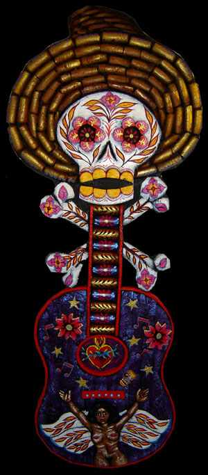 What steps do you take in this process?I'm trying to learn as much and do as much art as I can to make up for my lost years, and I've become as prolific as I was as a kid in order to leave a substantial body of work behind, or in case I get hit by a bus or whatever and can no longer make art . The amount of time varies from piece to piece . I can make most of my pieces in a full day.The big ones can take up to a week.The process of my carvings:Idea,looking at reference material, sketch (usually a really rough thumbnail if any sketching at all).Cut and paste the "raw" cork onto board or other surface. Prime it with black gesso or flat black latex paint, and paint it up with acrylic which I think i am getting a handle on finally. It wasn't until I read Todd Schorr's "Techniques" article in Art Juxtapoz Magazine where he mentions using the "Dry Brush Technique" that I was able to control the medium. the dry brush is not actually dry as you have to keep the bristles on your brush damp or else the paint hardens and your brush is dead. Using very little paint you gradually build up a controlled area of color. slapping on color is fun too, with murals especially . In my case drybrushing was key in understanding how to control the paint. I like oil paint but the fumes, and the dry time is something I cannot afford to deal with at the moment, but in the future perhaps, I'd like to bomb large carvings with a spray gun too!